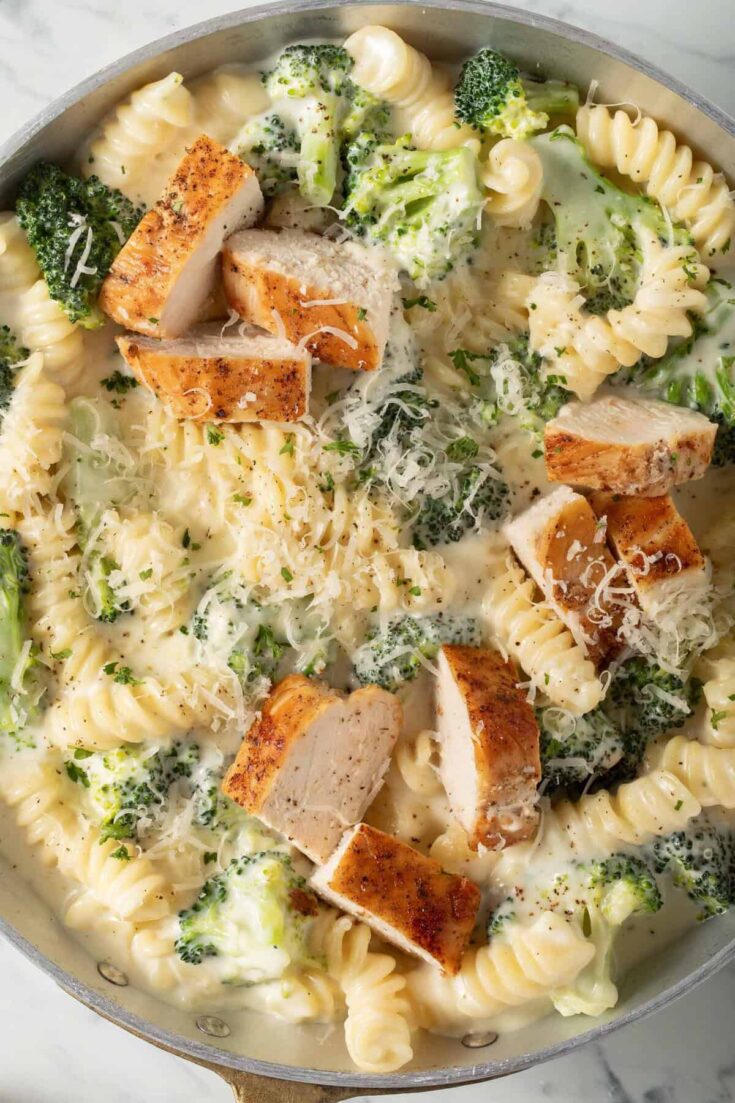 This Chicken Broccoli Alfredo recipe is made with pan-seared chicken, steamed broccoli, and pasta all tossed in an amazing Alfredo sauce with cream cheese. This recipe is super easy to make and its a family favorite!