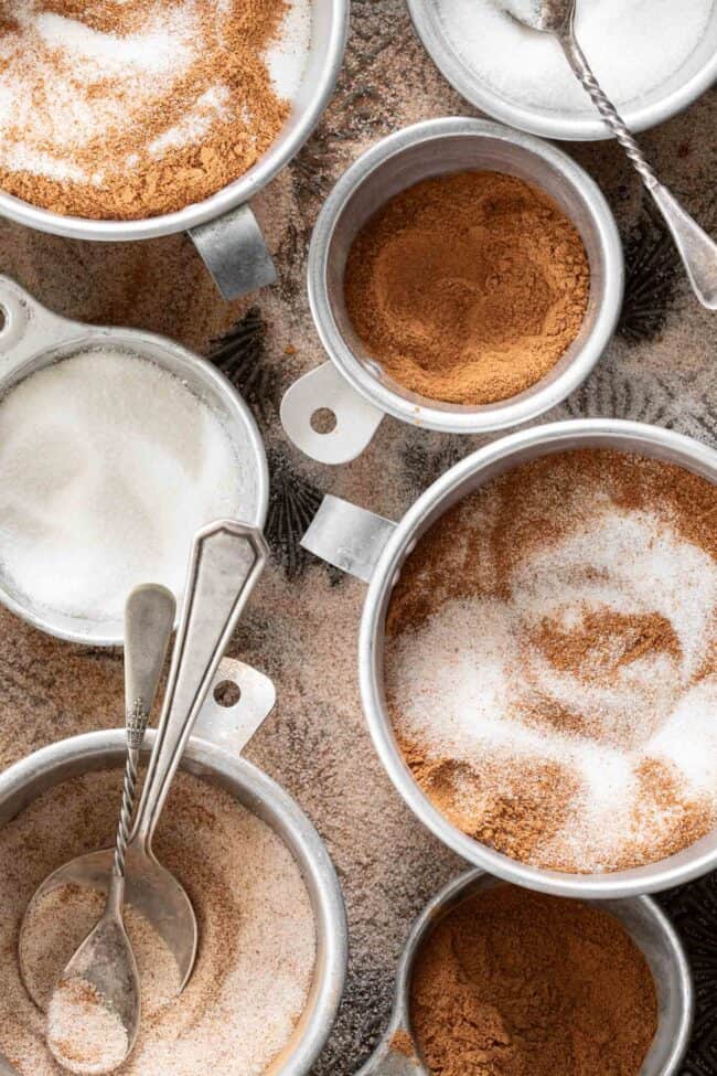 Remember a good cinnamon sugar ratio is 1:4 (1 part ground cinnamon to 4 parts granulated sugar).