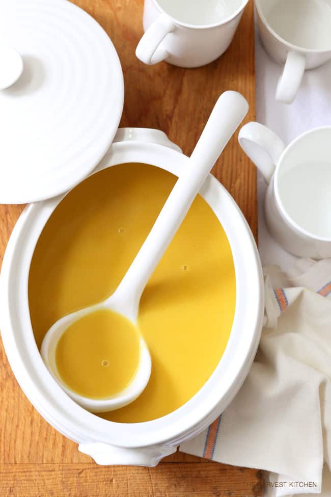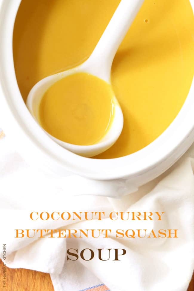 You can garnish this curry butternut squash soup with chopped cilantro (which is really tasty), or swirl a little extra coconut milk into each bowl of soup for the added luxe.