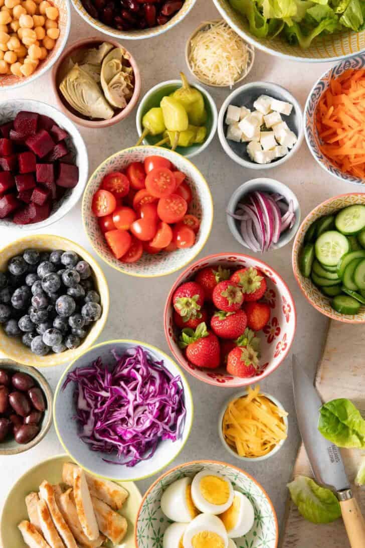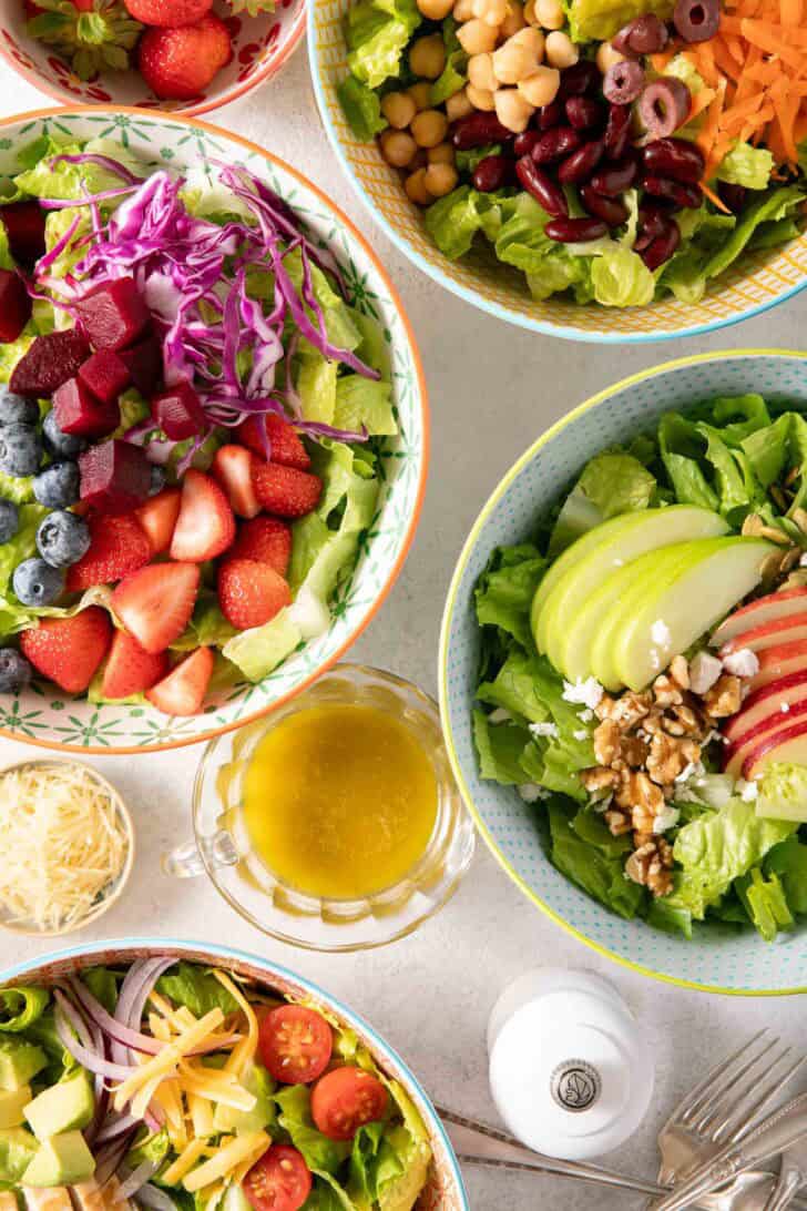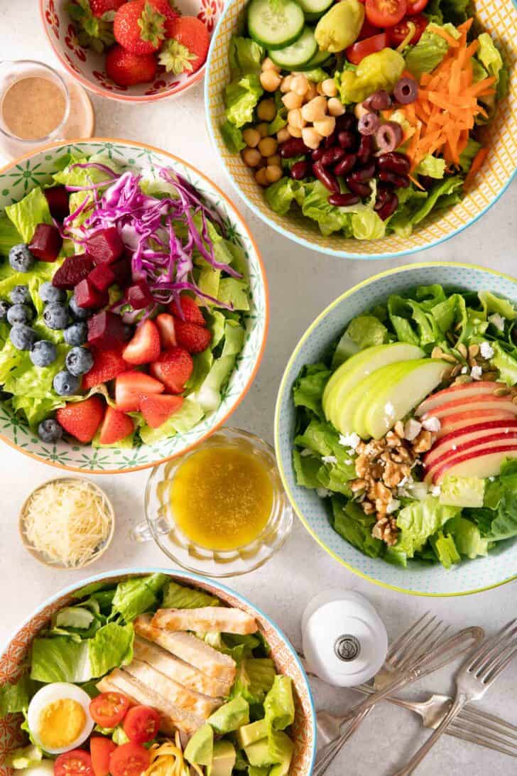 Salads should never be boring! So that's why we've put together a list of the best Salad Topping Ideas (more than just the standard salad bar toppings) to help you create big beautiful salads that you will love! If you like salads like we do, then you likely appreciate that there are so many ways to get creative with them. So what to put in a salad? It depends! They can be made to be nothing more than a simple starter, or they can be made meal-worthy crowded with ingredients that'll leave you feeling fully satisfied.