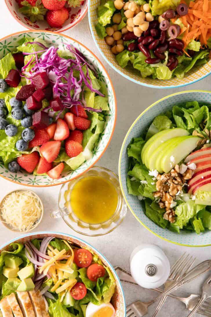Salads should never be boring! So that's why we've put together a list of the best Salad Topping Ideas (more than just the standard salad bar toppings) to help you create big beautiful salads that you will love! If you like salads like we do, then you likely appreciate that there are so many ways to get creative with them. So what to put in a salad? It depends! They can be made to be nothing more than a simple starter, or they can be made meal-worthy crowded with ingredients that'll leave you feeling fully satisfied.
