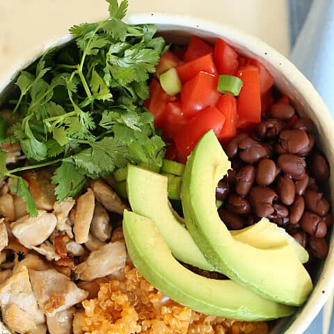 These chicken taco bowls are versatile and fun to make. Switch the ingredients up any way you like.