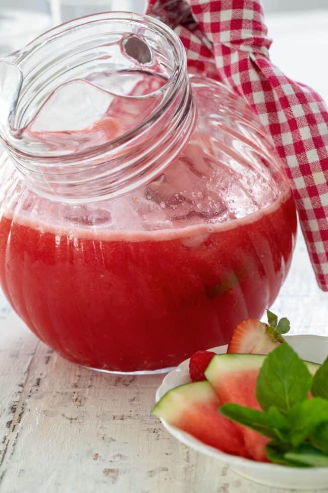 To make this recipe, all you need is a blender. You can strain the watermelon juice through a fine mesh for a more liquified drink, but if you don’t mind a little texture, then don’t bother straining it. We add in a little unsweetened white grape juice and apple juice to the mix which makes it extra tasty and refreshing.